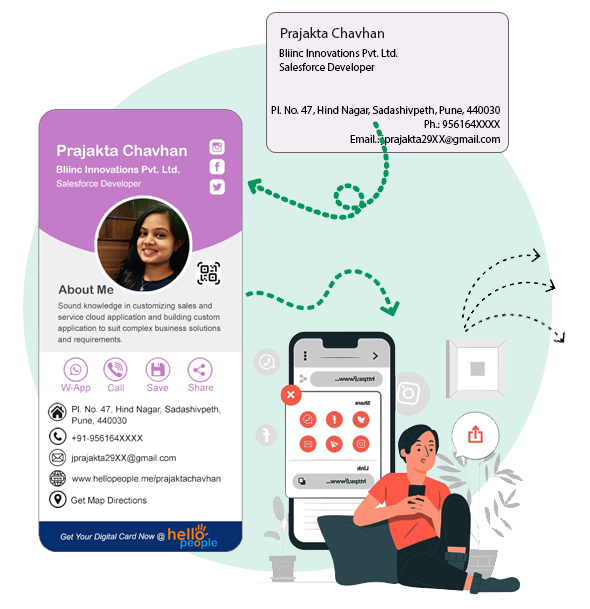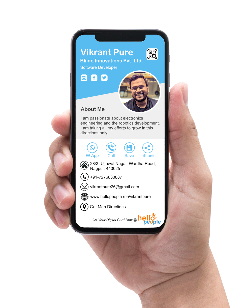 Get Your Card NowHelloPeople personalized digital card is not just a fancy looking desing and creative presentations of business card, rather its a power packed full featured interactive digital identity.